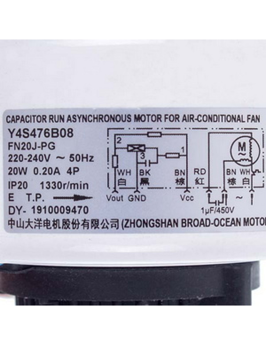 Мотор вентилятора блоку для кондиціонера C&H 150120874 Y4S476B08 20W 220V 0.2A, шток 8x49mm