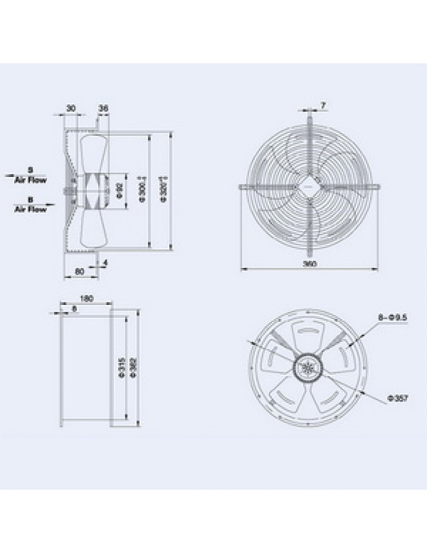 Осьовий вентилятор Weiguang YWF4E-300S-92/35-G 220V 1380rpm 1664 м3/год