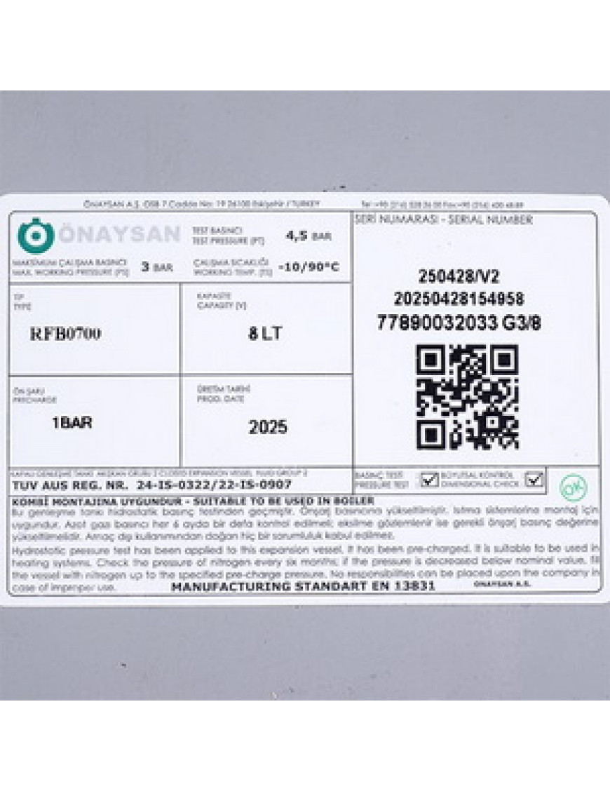 Розширювальний бак Onaysan 8 л 3/8'' для газового котла Ferroli 39804890