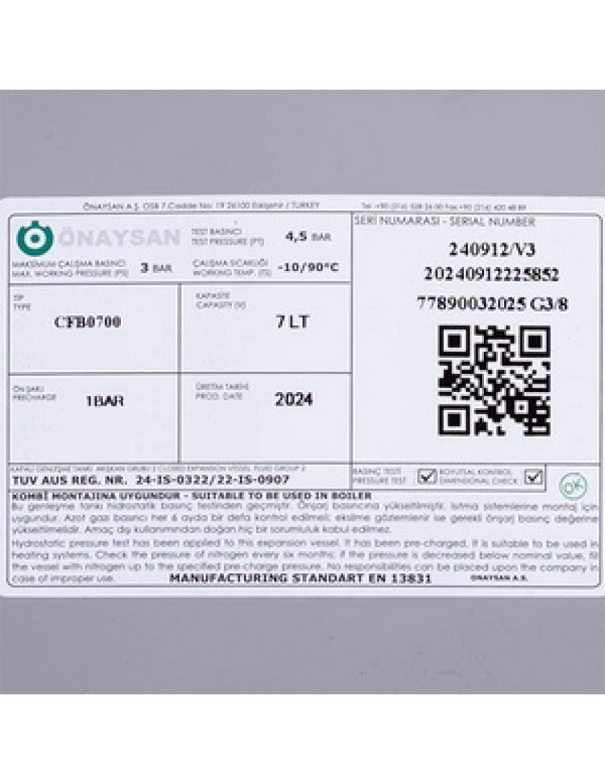 Розширювальний бак Onaysan CFB0700 7 л 3/8" для газового котла Baxi/Westen 5668370