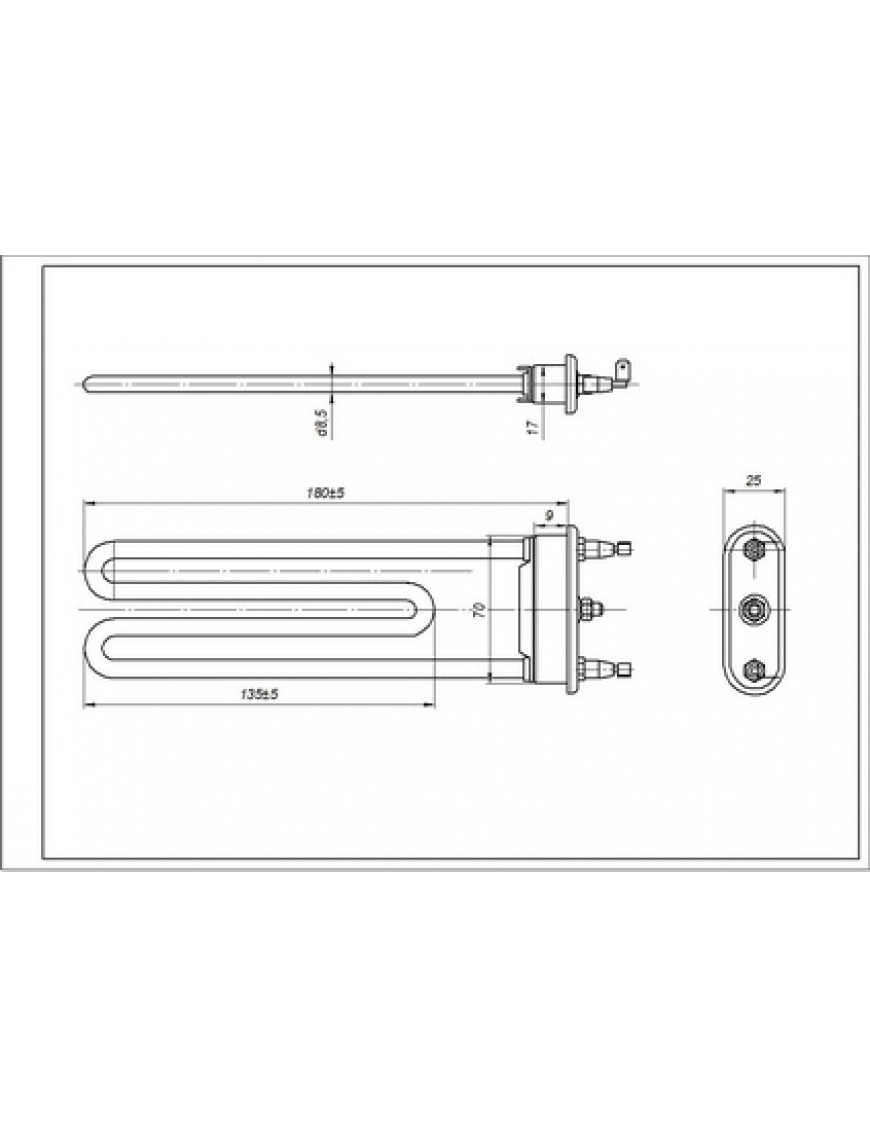 Тен для пральної машини Ardo 524017300 TP 183-LB-1900 Thermowatt L=183mm 1900W